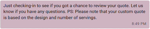 “Hope your event was beautiful. If you loved the cake, we’d truly appreciate a review.”